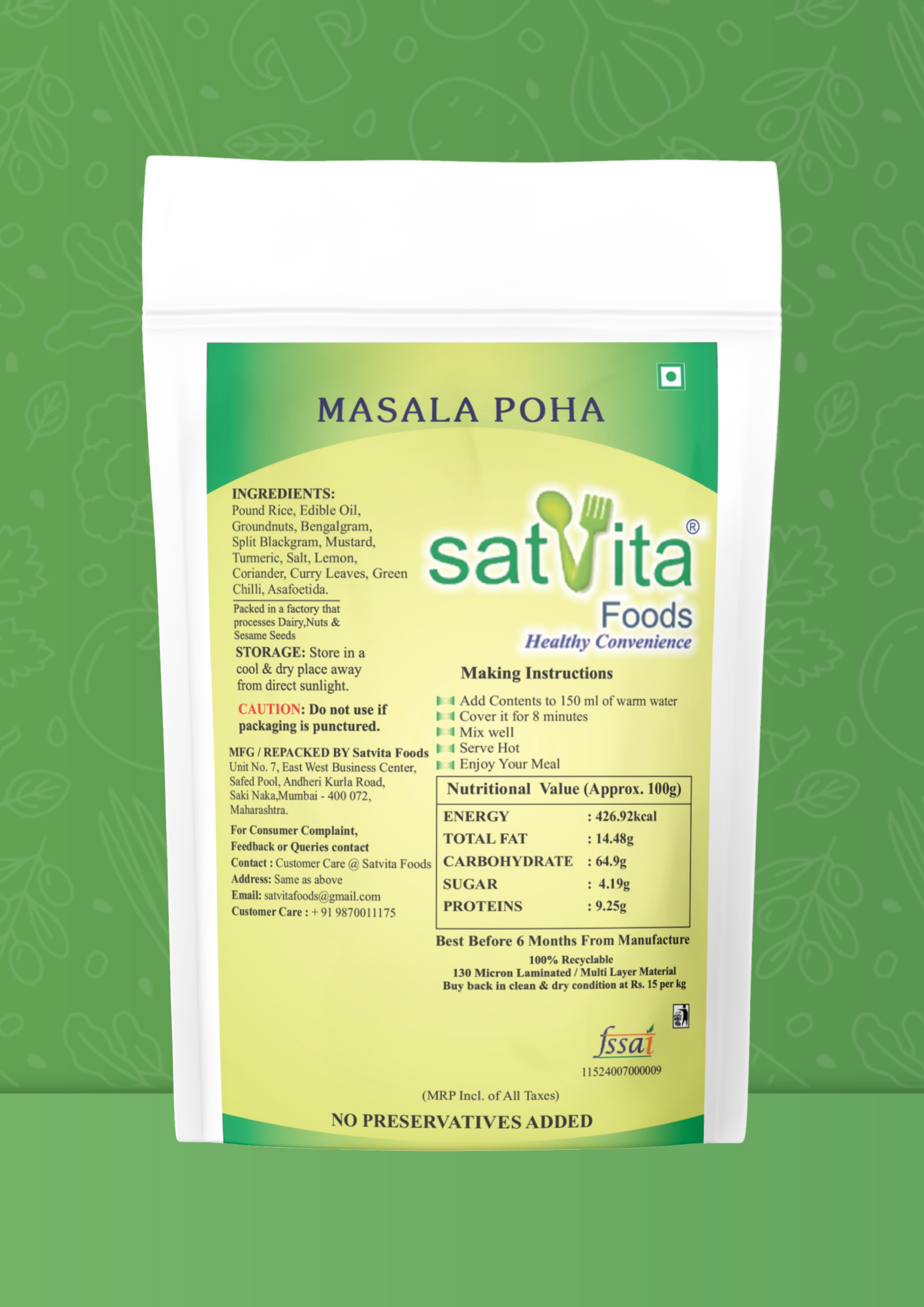 Masala Poha Net Weight : 70 gms Serving Portion 225 – 250 gms