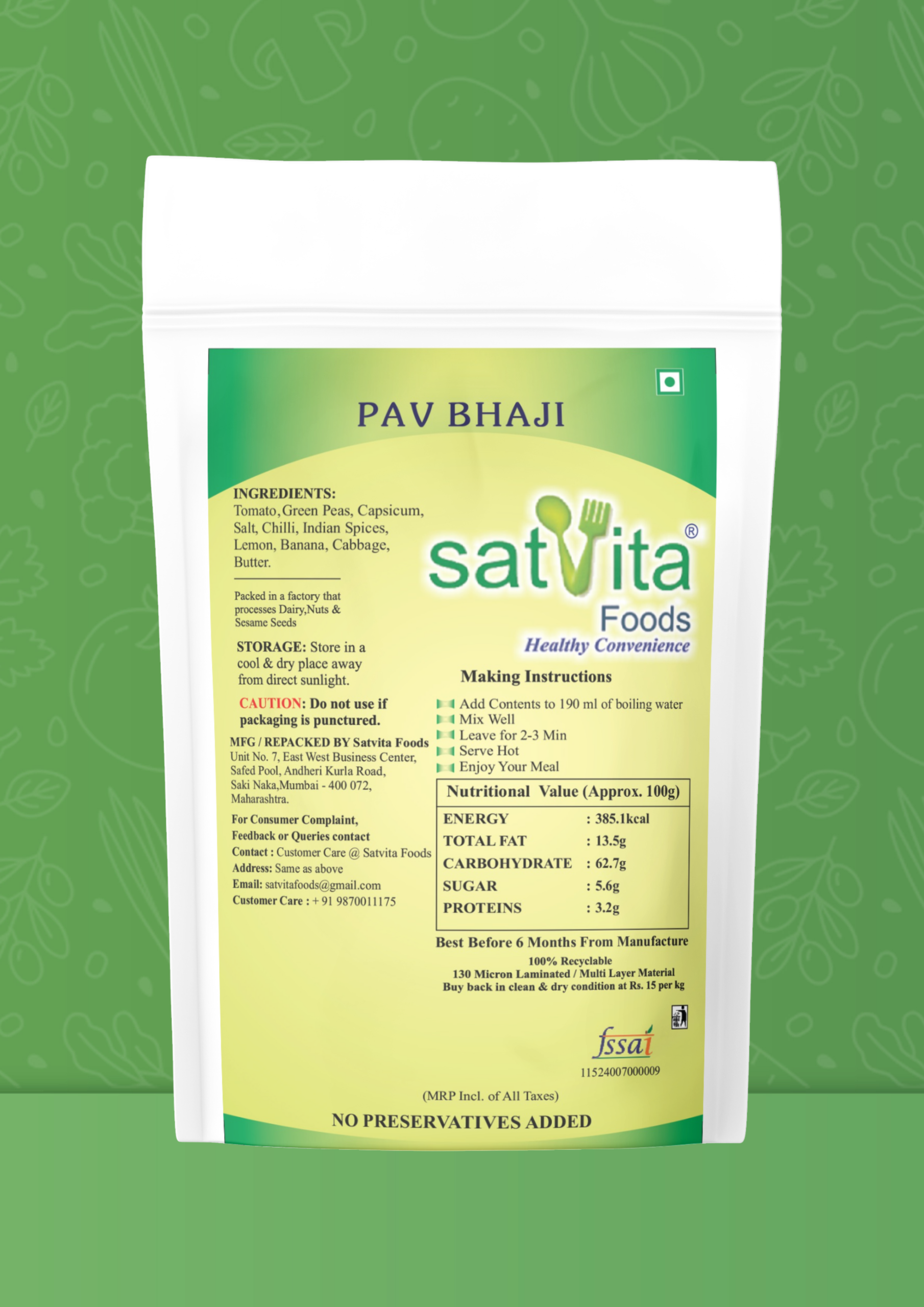Pav Bhaji Net Weight : 30 gms Serving portion 225 – 250 gms